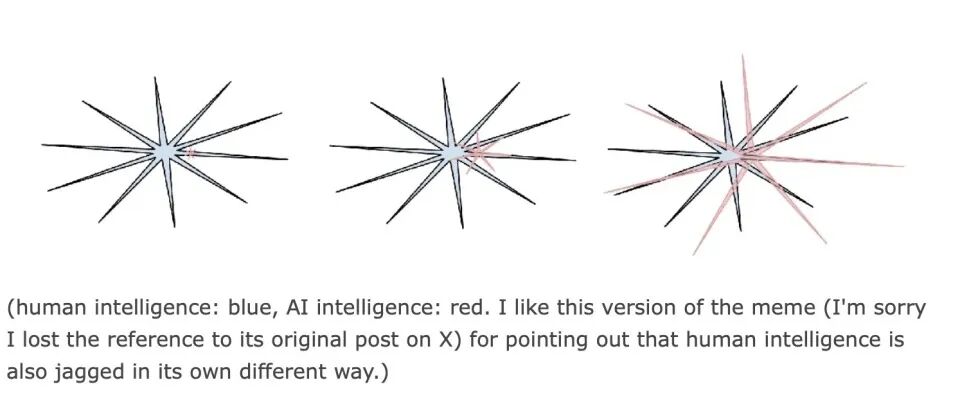 他用“召唤幽灵”(Summoning Ghosts)而非“进化动物”(Evolving/growing Animals)来比喻当前AI的成长模式,解释了为何当前的大语言模型会展现出“锯齿状”的性能特征——在尖端领域表现如天才,却在基础常识上可能如孩童般脆弱。