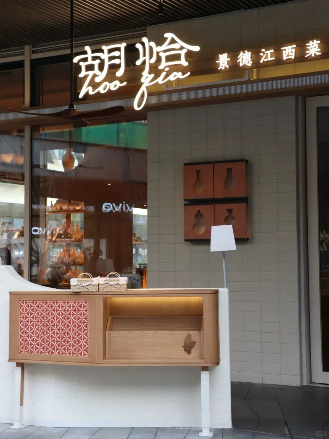 胡恰不仅在产品端发力,门店装修亦独具匠心,选取景德镇的陶罐、蝴蝶和竹编等元素装饰,氛围感十足,并把明厨明档做成景德镇“瓷窑”。