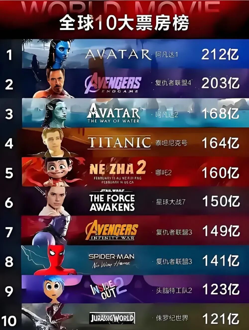 票房成绩排在《哪吒2》前面的其他作品,大多数也是上映于2000年至2010年。