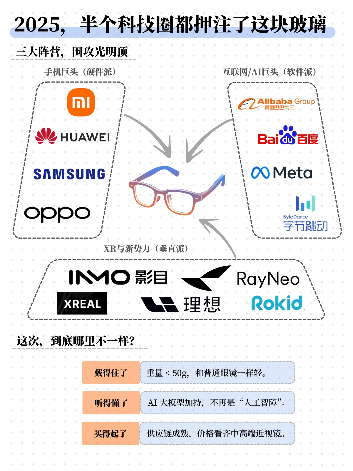 手机卷不动了,VR迟迟未能破圈,巨头们决定在你的鼻梁上开辟“第二战场”。2025年,就是把手机能力“戴”在脸上的元年。