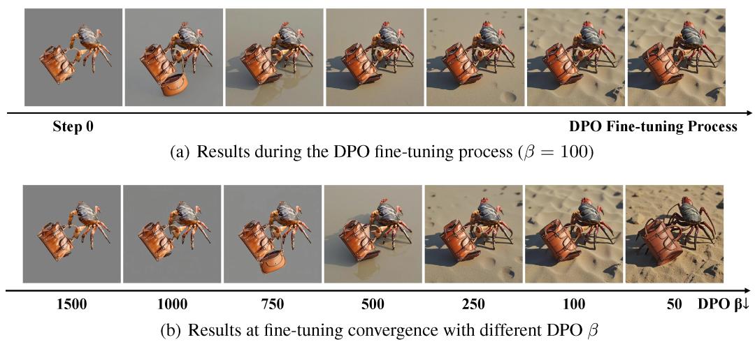DPO强化学习:引入直接偏好优化 (DPO),解决了监督微调可能导致的布局僵硬复制问题,从而增强了生成图像的多样性和自然度。