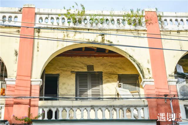 如“广州湾商会会址”,外墙、拱门、百叶窗和女儿墙宝瓶式装饰等诸多西式建筑元素,使这座建筑颇具异域风情。