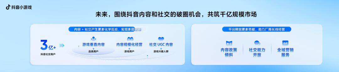此次抖音小游戏生态大会透露的信息,已经形成了一套完整的生态赋能体系。从产品层面的社交化与内容化指引,到运营层面的流量与商业化扶持,抖音正在为开发者构建一个低门槛、高潜力的创业生态。