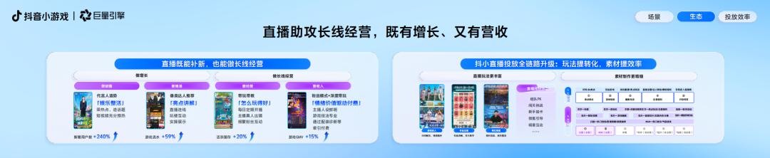 不仅如此,在抖音内容营销中,小游戏相关的传播也革新了传统。比如在抖音直播中,实景小游戏直播已经成为了新兴的小游戏营销模式,通过具象化的内容展示,来达到吸引玩家的效果。