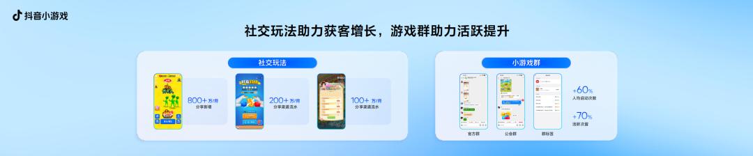 用户方面,今年抖音小游戏用户活跃时长增长20%、付费用户留存也增长30%。