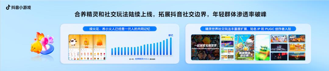 此外,在此次小游戏生态大会上,抖音官方公布的一组数据同样极具行业启示意义——平台内置的「养小火人」玩法已成为现象级社交内容,在近一年的时间里,凭借其轻量化的社交互动设计,通过持续的社交裂变,日活跃用户量已突破1亿大关。