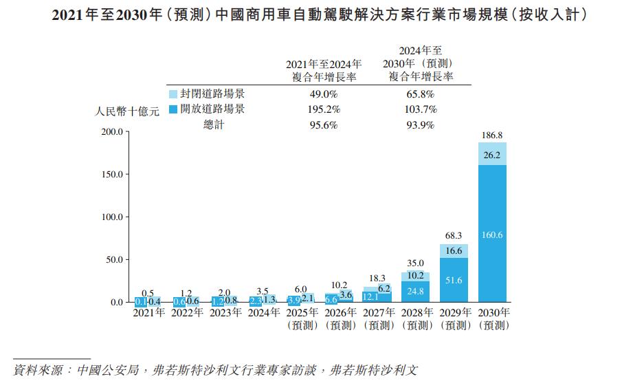 尽管主线科技宣称在封闭道路场景的L4级自动驾驶卡车市场占据份额第一,但根据招股书,这个细分赛道在2024年的总规模仅约为13亿元。