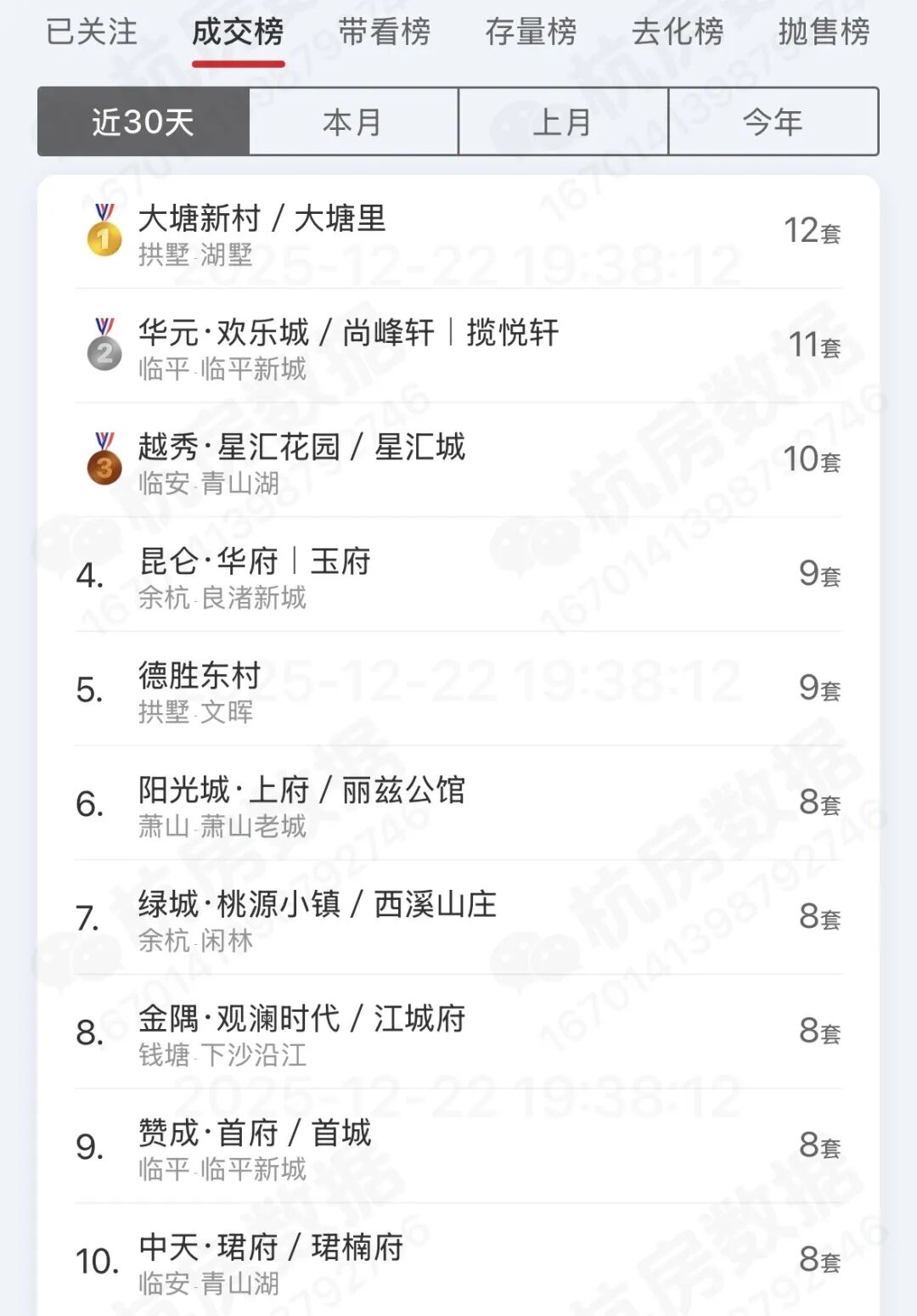 过去30天内,大塘新村网签量达12套,位列全杭州二手房小区第一。