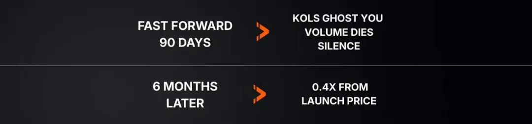 投机者们知道游戏已经失灵。他们正持观望态度。与此同时,创始人却不断将 60%的预算投入到 Discord 机器人、Twitter 赠品和 KOL 宣传上——在统计上无关紧要的指标上烧钱。