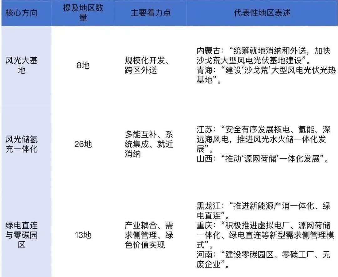 各地的应对方案呈现“双轨并行”特点:对内强化系统调节能力,对外拓展跨区输送通道。超过半数地区规划中提到“风光储氢充一体化”,本质上是通过储能、氢能等技术,在本地实现“产消平衡”。