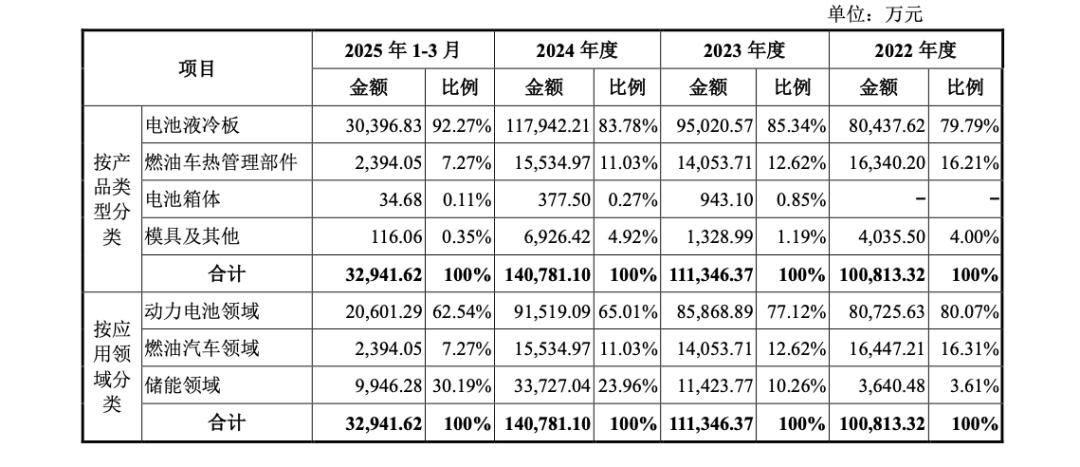 招股书显示,纳百川专注从事新能源汽车动力电池热管理、燃油汽车动力系统热管理及储能电池热管理相关产品的研发、生产和销售,主要产品包括电池液冷板、电池集成箱体、燃油汽车发动机散热器、加热器暖风等。