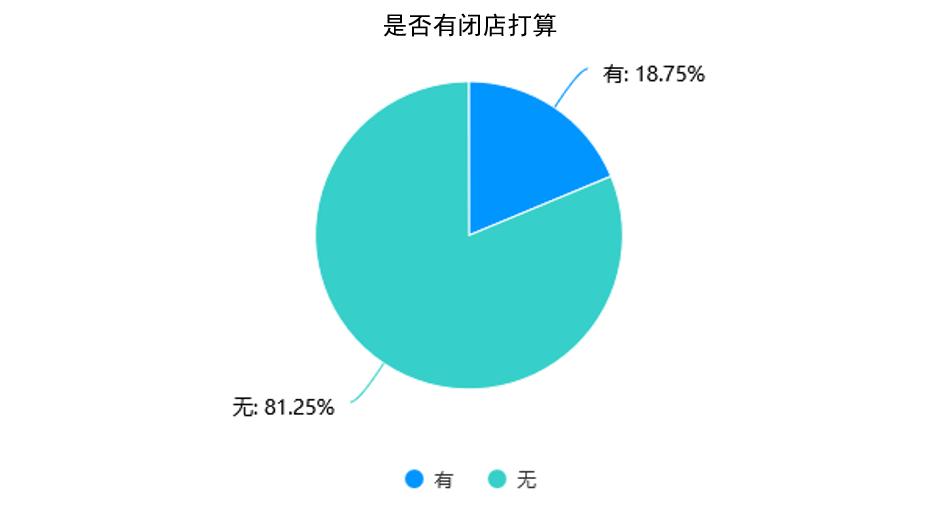 而在场地扩张和收缩层面,超过80%没有闭店的打算,近20%考虑闭店,算是一个不错的消息。