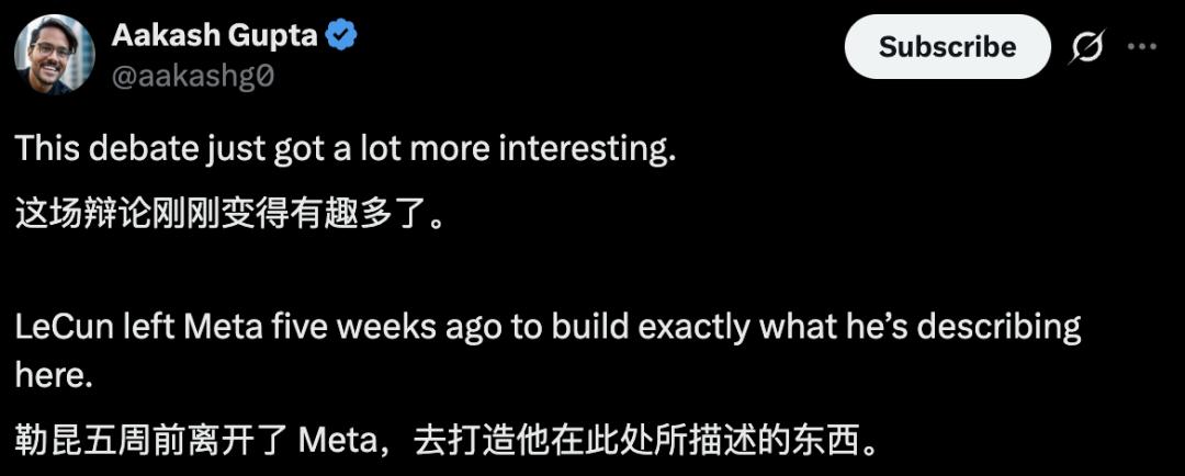 更让这场辩论富有戏剧性的,是LeCun即将离开Meta,创办AMI Labs,押注一种完全不同于大模型的路线。