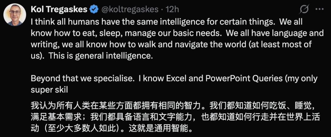 他认为LeCun混淆了「通用智能」(General Intelligence)与「普适智能」(Uniwersal Intelligence)的概念,忽略了一个核心事实——人类大脑本身就是高度通用的系统,尽管它在具体任务上并非最优。