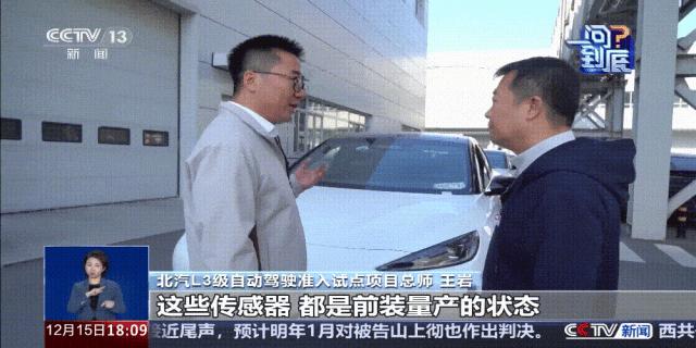由于直播采用竖屏的形式,图中有关车辆的画面不太清晰,不过北汽极狐阿尔法S L3版测试车已经在央视的新闻节目中亮相,根据王岩的介绍,北汽极狐阿尔法S L3版搭载了三款激光雷达和十几颗摄像头,车身周围还有很多超声波雷达,实现360度视线的全方位感知,同时这些传感器都是前装量产的状态。