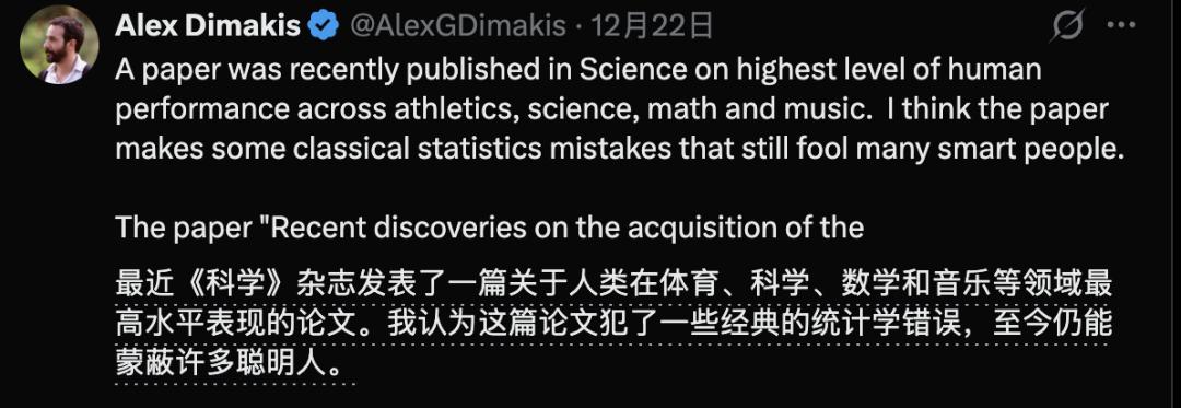 UC伯克利教授Alex Dimakis指出,这项研究可能犯了两个经典的统计学错误。