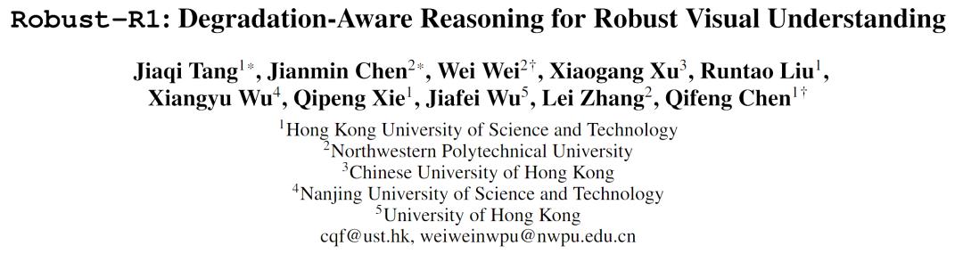 【导读】多模态大语言模型(MLLMs)已成为AI视觉理解的核心引擎,但其在真实世界视觉退化(模糊、噪声、遮挡等)下的性能崩溃,始终是制约产业落地的致命瓶颈。近日,一篇被AAAI 2026接收为Oral的重磅论文Robust-R1,给出了革命性解法:来自香港科技大学、西北工业大学等团队首次跳出「隐式适应」的思维定式,将视觉退化问题重构为显式结构化推理任务,让模型不仅「抗干扰」,更能「诊干扰」,在多项权威评测中实现质量与鲁棒性的双重突破。