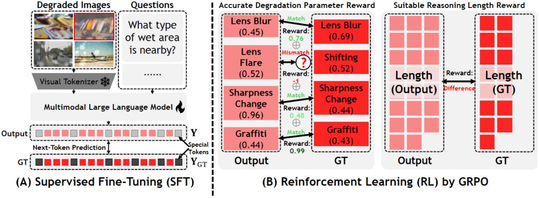 通过在大规模合成退化数据上进行监督微调,模型习得了「先诊断,后推理」的基本模式。