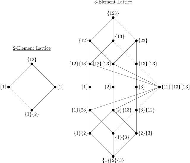 当源数 N>2,部分信息分解迅速复杂化。Williams & Beer 引入冗余格(Redundancy Lattice)——一个偏序集,枚举所有信息分配的可能“原子”。