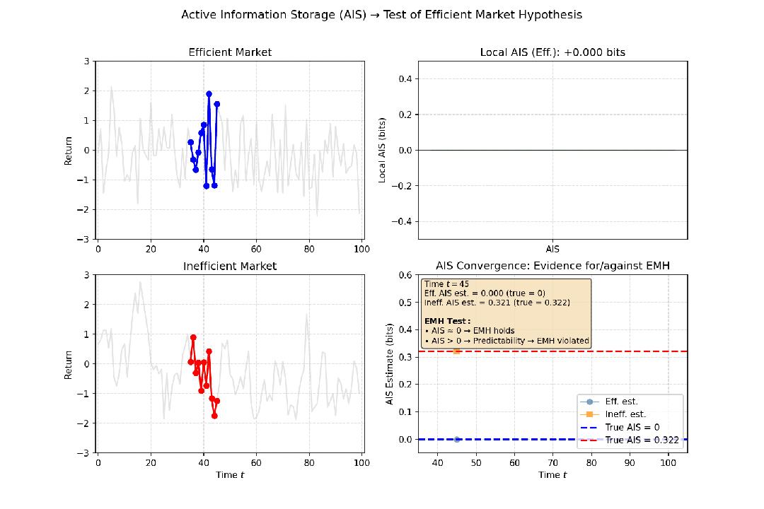 在金融市场中,常见的有效市场假说认为,股价的历史信息不能预测未来收益,即收益率序列接近随机游走。如果计算出的AIS值会非常低,接近零。这意味着资产的过去价格对其当前价格几乎没有提供额外的信息,支持了“市场无记忆”的观点。反之,如果发现某只股票的AIS值持续较高,则可能意味着存在可预测的模式,违背了有效市场假说。