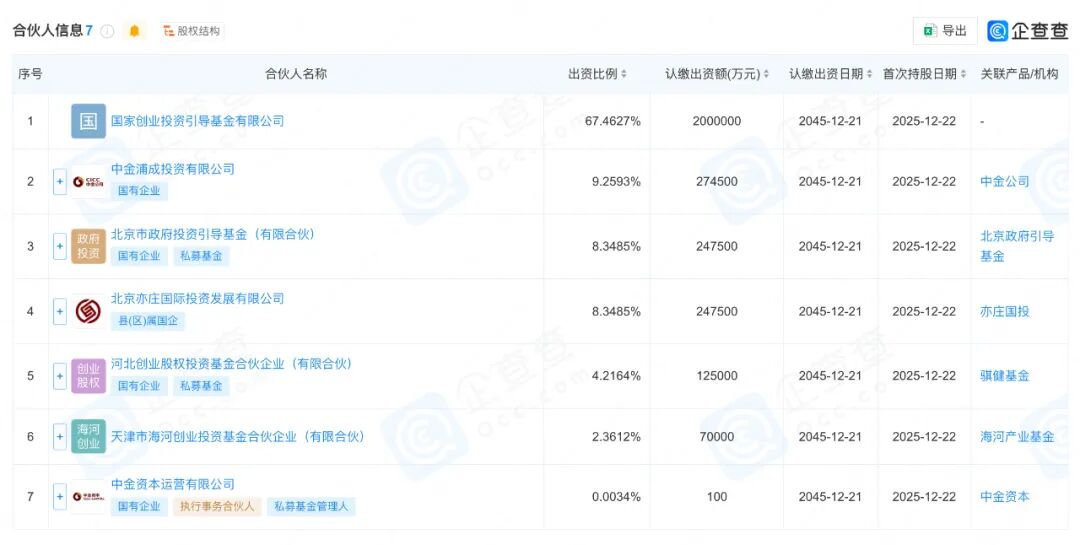 一、注册规模296.46亿元,京津冀创业投资引导基金合伙企业(有限合伙),简称:京津冀创业投资引导基金,所属地区为北京市大兴区,该基金执行事务合伙人为中金资本,LP包括国家创投引导基金、中金公司、北京政府引导基金、亦庄国投、河北市和天津市国资和中金资本。