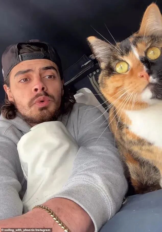 奥利弗和爱猫菲尼克斯|图源instagram@sailing_with_phoneix