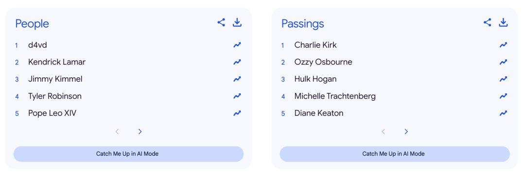 在 Year in Search 中,不同榜单的统计对象也有所区分。例如,“逝世人物”榜单只包含在统计期内去世的人,而“人物”榜单则只统计仍然在世的人,不会与前者混在一起。新闻类榜单聚焦的是与新闻事件相关的搜索趋势,但它并不试图覆盖全年所有重要新闻,而只呈现那些在搜索行为中增长最快的部分。这意味着,没有上榜并不代表事件不重要,只能说明它没有在搜索层面出现明显的爆发式关注。