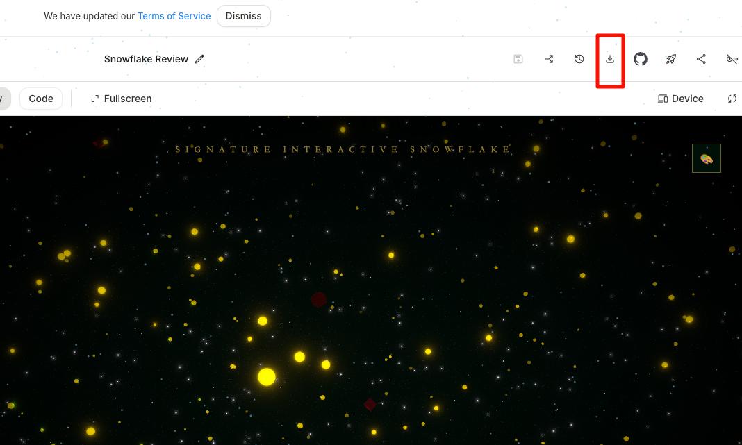 第一步: 先让它把雪花的 3D 形状写出来,只要形状对了,先下载一个版本,你可以在这里找到下载按钮。