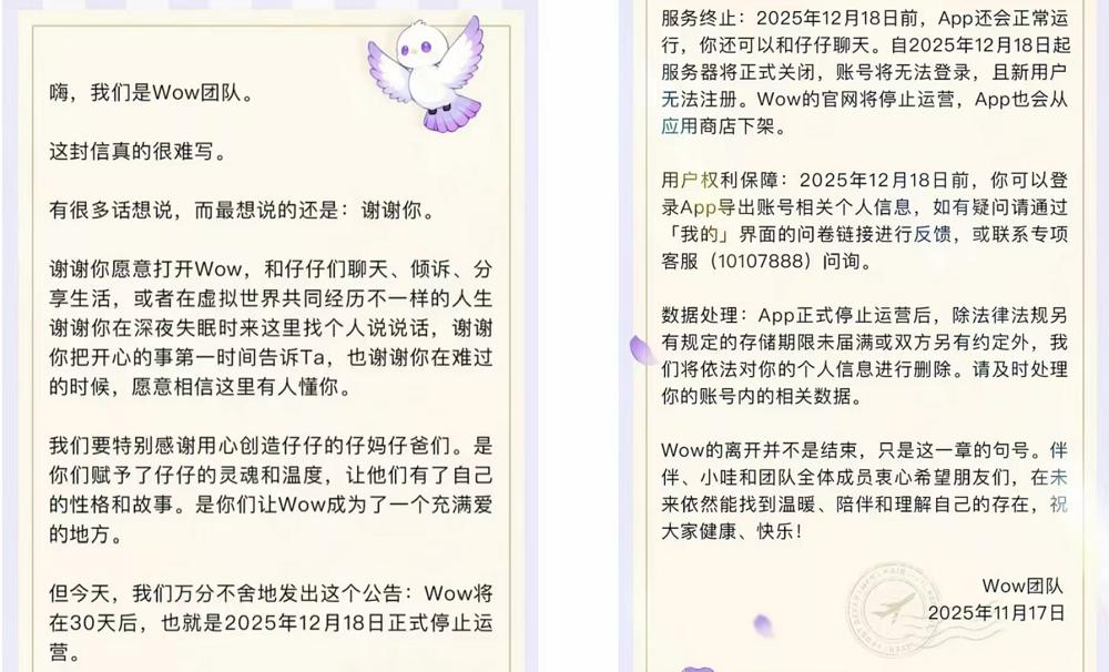 AI陪伴类应用和产品在2025年的集体阵亡,是一个不容忽视的现象。据智东西统计,今年至今,共有至少8个知名AI陪伴类应用中止运营。