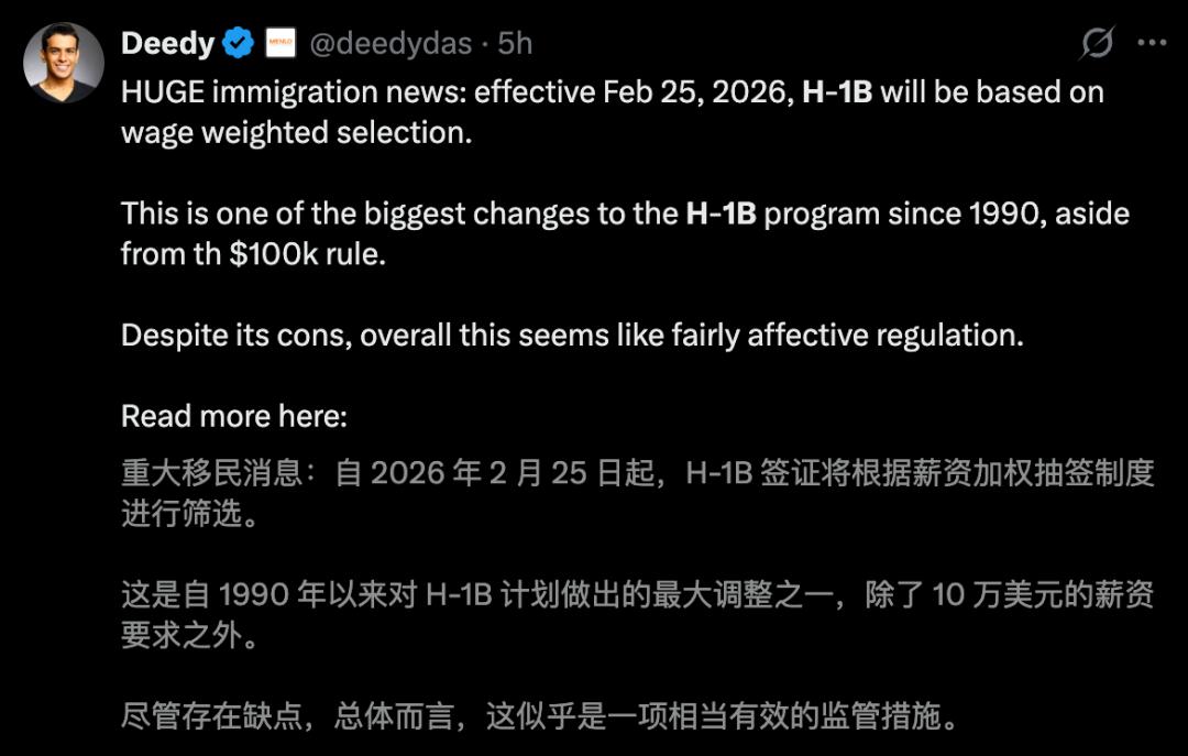 有网友表示,除了10万美元门槛新规,这是自1990年以来,美国对H-1B项目最重大的变革之一。