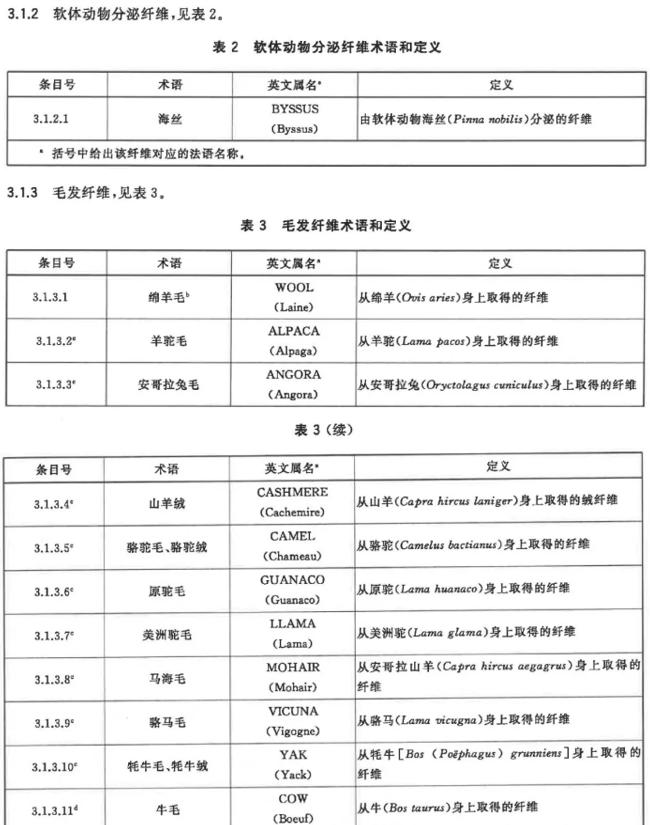 纤维名称也有对应的属名规范。