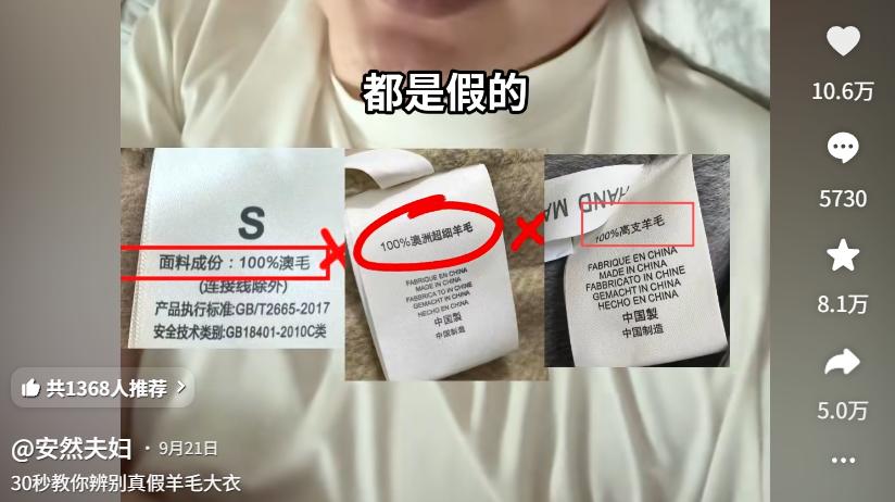 短视频平台上,像 30 秒教你辨别真假羊毛大衣,一招教你判断买的羊毛大衣是真是假这种视频,随随便便就能收获的上万点赞、收藏、转发。