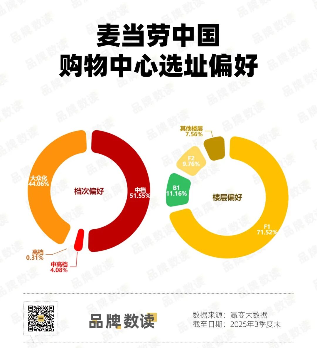 这种对流量效率的追求,也体现在楼层的选择上。数据显示,其商场店中有超过7成门店开在一楼。作为平价西式快餐,麦当劳主打“高频刚需”场景,占据一楼正是为了最大化触达自然客流,降低消费者的到店决策成本。