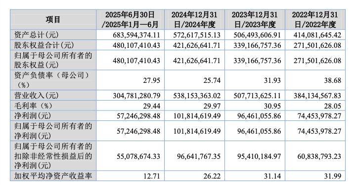 主营业务的高度集中,也将导致公司成本高度依赖原材料价格。据招股书,2022-2025年上半年,公司直接材料成本占主营业务成本的比例分别为77.75%、79.81%、79.55%和79.88%。