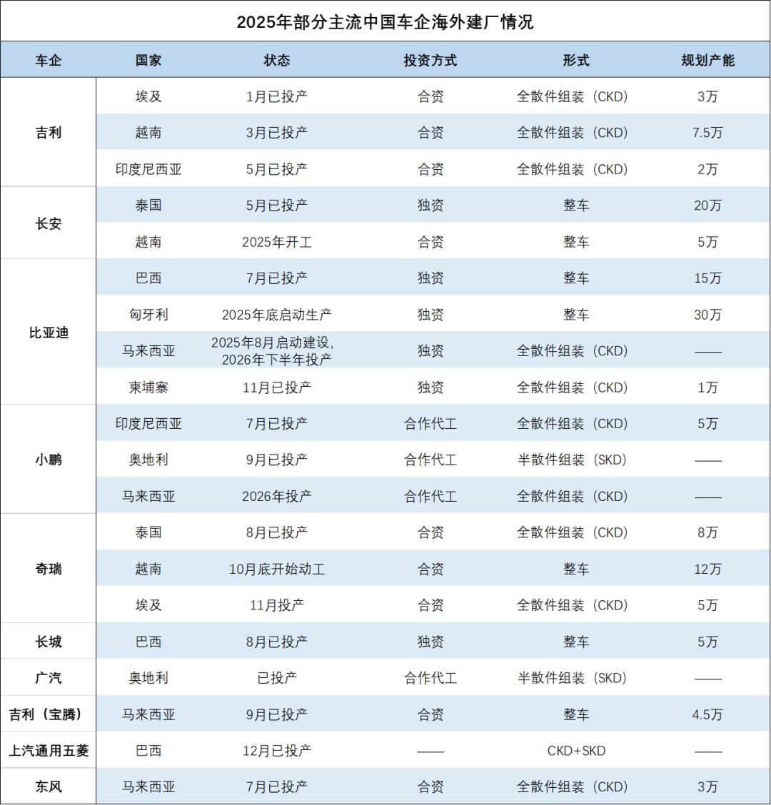 事实上不只是小鹏,整个2025年,中国车企海外建厂的速度都在明显加快。