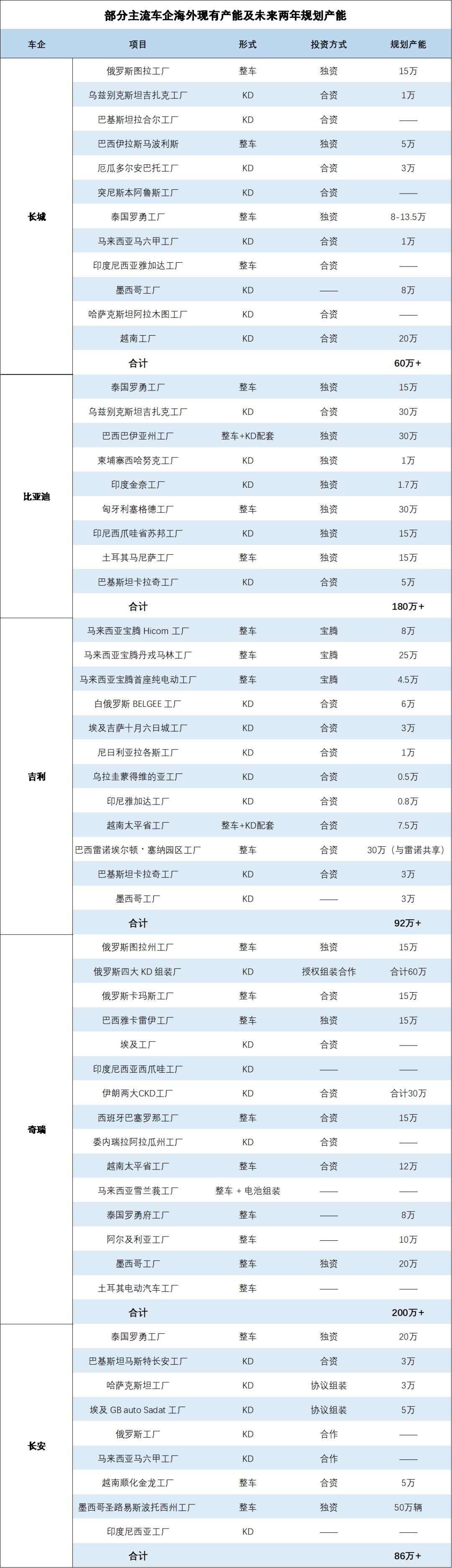 从不完全统计来看,仅今年投产的海外工厂,规划产能就超过了120万辆——和国内已经产能过剩的状态形成了鲜明对比。