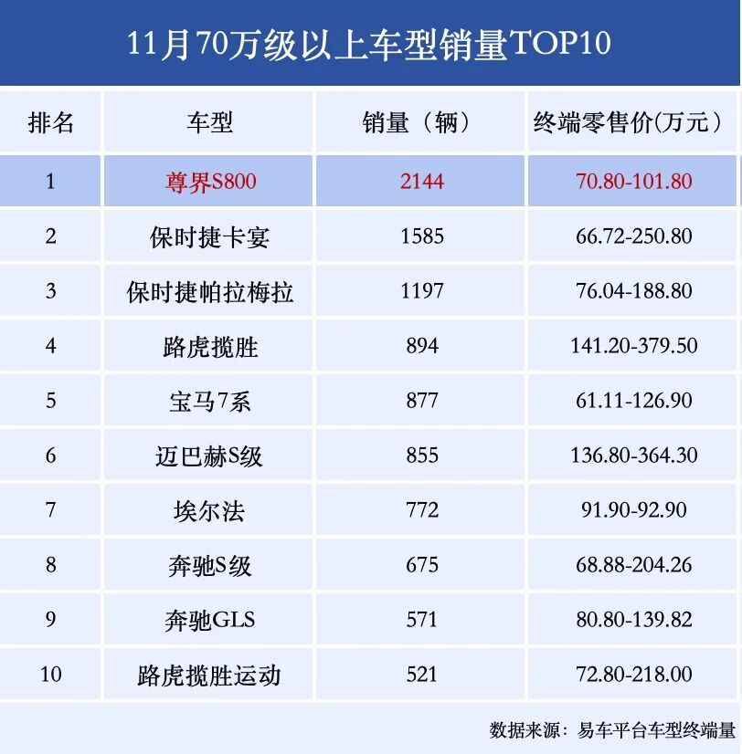 上个月,尊界S800月销超2000辆的数据,相当于奔驰S级、宝马7系及奥迪A8三款车型销量总和之多。