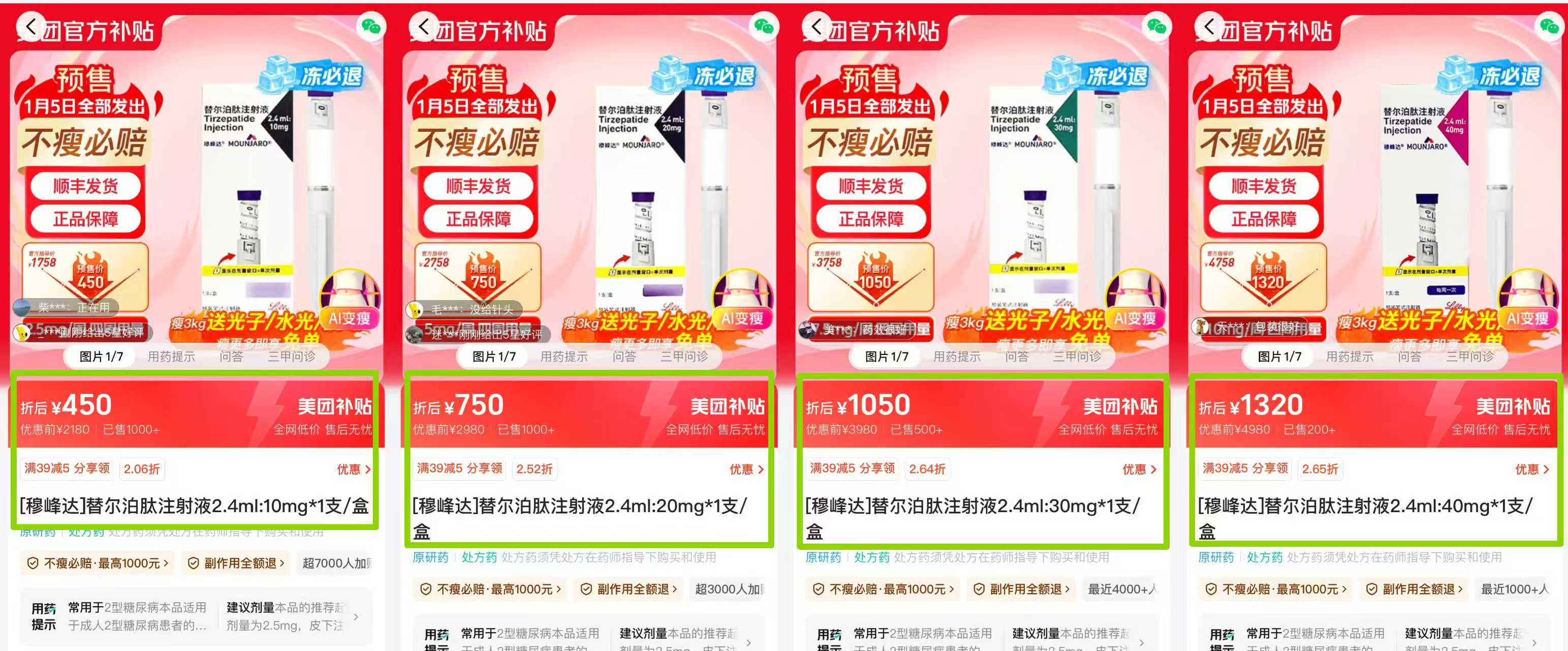 京东、美团、拼多多平台上,替尔泊肽新预售价都有了大幅下降,且自2026年1月开始执行,与国家医保目录的正式落地时间高度契合。