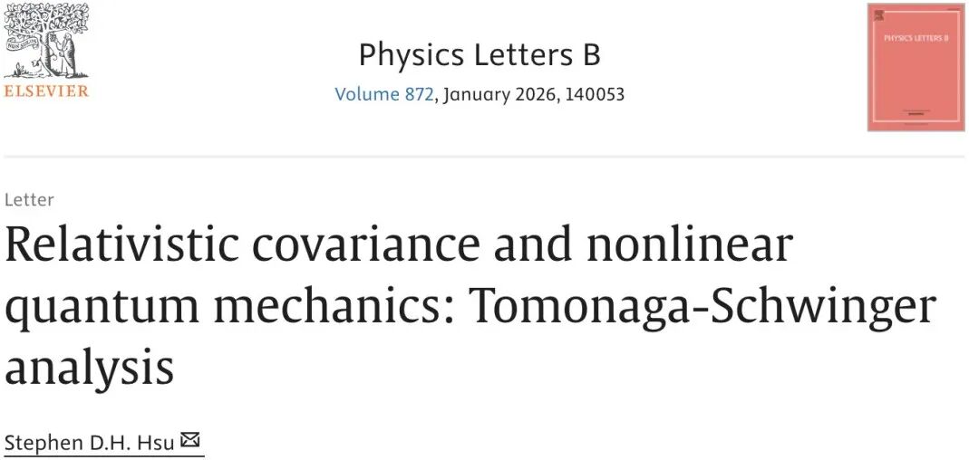 密歇根州立物理学家许道辉,11月把预印本挂在arXiv上,之后被Physics Letters B接收。