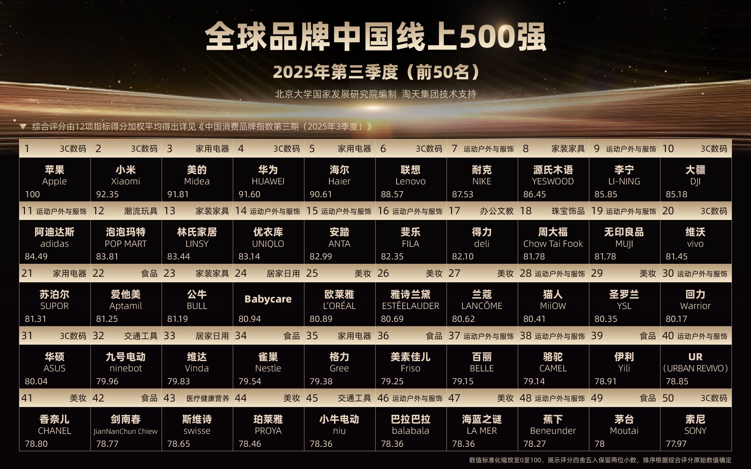 最新“全球品牌中国线上500强”季度榜单出炉,大疆首次进入前10、泡泡玛特上升显著