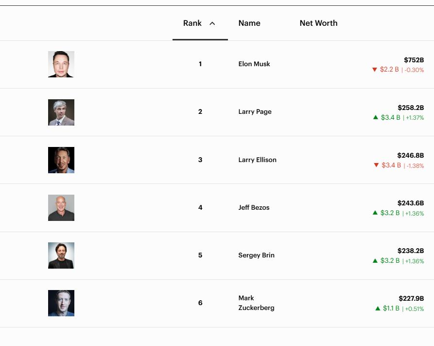 马斯克之后,排名第二的是谷歌创始人之一拉里·佩奇,个人财富达到了2582亿美元。拉里·佩奇凭借着谷歌今年的强劲业绩,已超越Meta首席执行官扎克伯格和贝佐斯,在福布斯全球富豪榜排名第2。