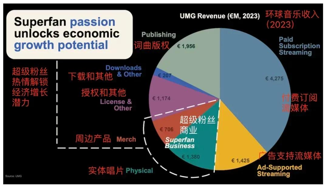 2025年的一个行业热词是“超级粉丝经济”,比如“超级VIP”,强调的是核心粉丝的消费转化,背景是音乐流媒体的APRU(每用户平均收入)偏低,在音乐发达市场的流媒体用户见顶的情况下,难以支撑音乐市场的继续增长。