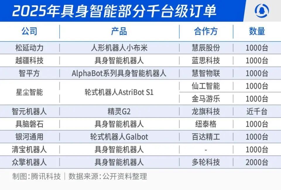对应的,落地企业也呈现分层:头部企业凭借综合优势,已拿下汽车等核心场景的千台级订单,进入小批量交付阶段。