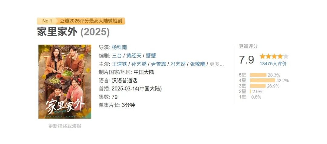 但在今年,这种情况开始发生改变。一个非常直观的信号是,越来越多的短剧开始拥有百度百科、豆瓣词条、评分体系等完整的作品档案,越来越多的观众开始在微博、小红书、抖音、快手等社交平台讨论短剧。短剧正在从一种即时的、一次性的流量消费品,逐渐转变为具备大众关注度,可被探讨与解读的内容作品。