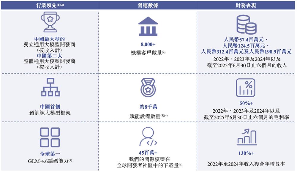 智谱为机构客户(包括私营企业及公共行业实体)及个人用户(包括个人终端用户及独立开发者)提供通用大模型服务。截至2025年6月30日,智谱的模型已为逾八千家机构客户提供支持,截至最后实际可行日期,已为约80百万台设备提供支持。