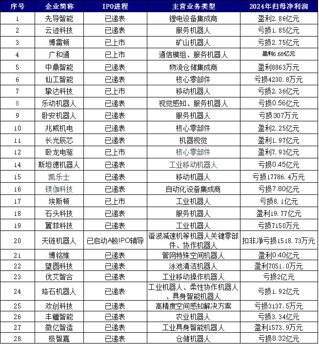 还有一批机器人企业已经走到了IPO决赛圈。截至12月,今年已有超30家机器人产业链企业排队递表,覆盖核心零部件、整机制造和系统集成等核心环节。