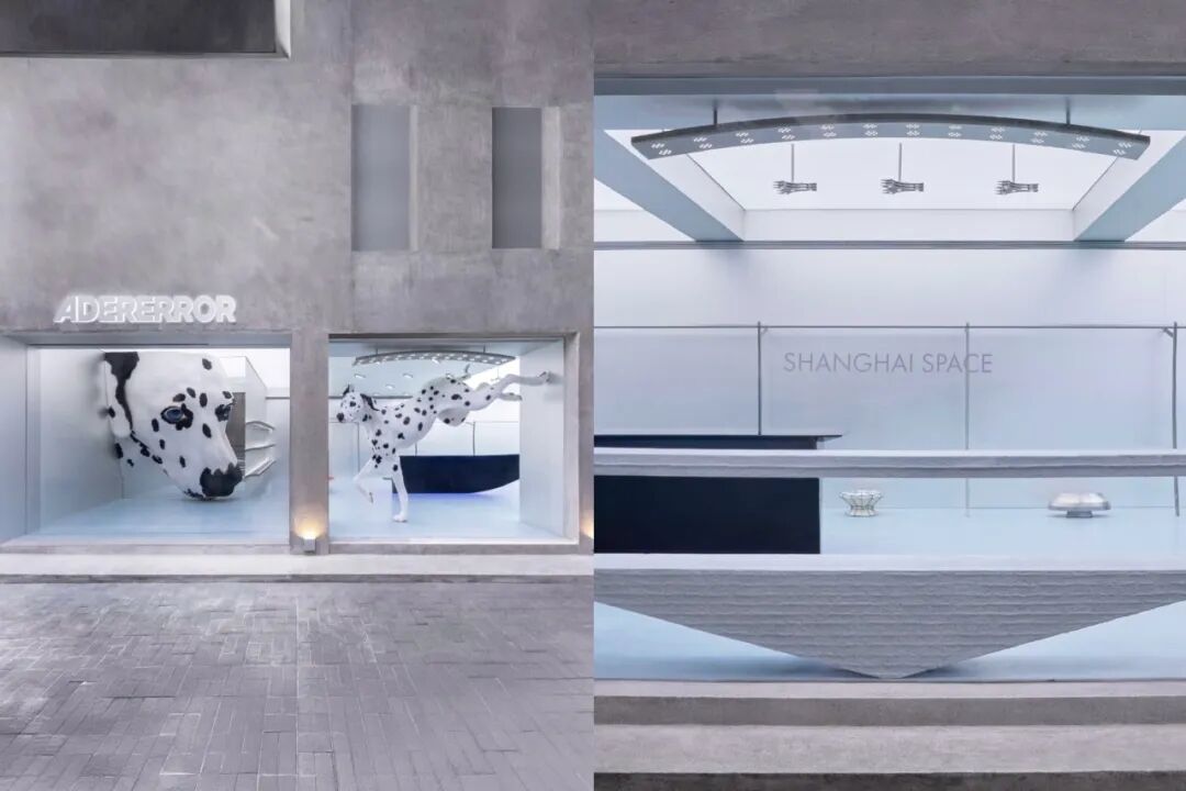 注重树立高端品牌形象,同样体现在店铺空间打造上。不同于chuu在门店内设置logo彩灯、打卡墙的营销方式,这波韩流品牌更注重品牌文化输出。比如,AderError中国首店为艺术策展空间,门店一层的巨型大麦町犬艺术装置,是品牌想象中的达尔马提亚形象化身,作为连接消费者与品牌的象征媒介。