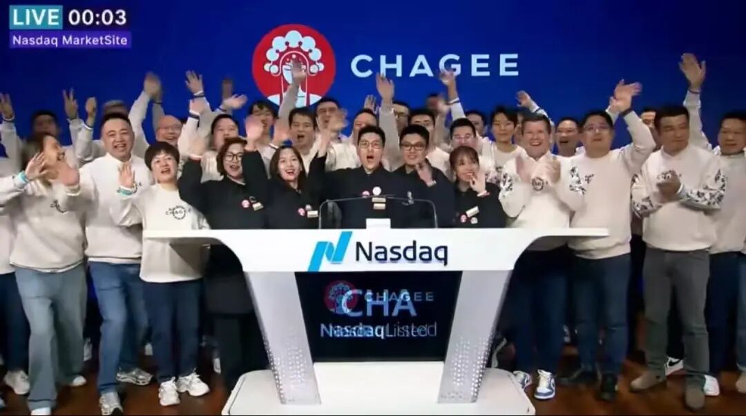 霸王茶姬在纳斯达克敲钟现场 图片来源:霸王茶姬