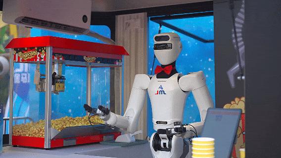 △星尘智能机器人在金马游乐园中机器人零售服务店中盛爆米花,图片:采访人提供