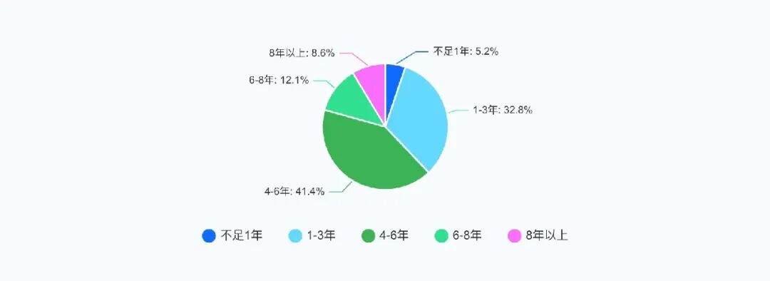 入圈 4-6 年的群体人数最多,占比约为 41%;